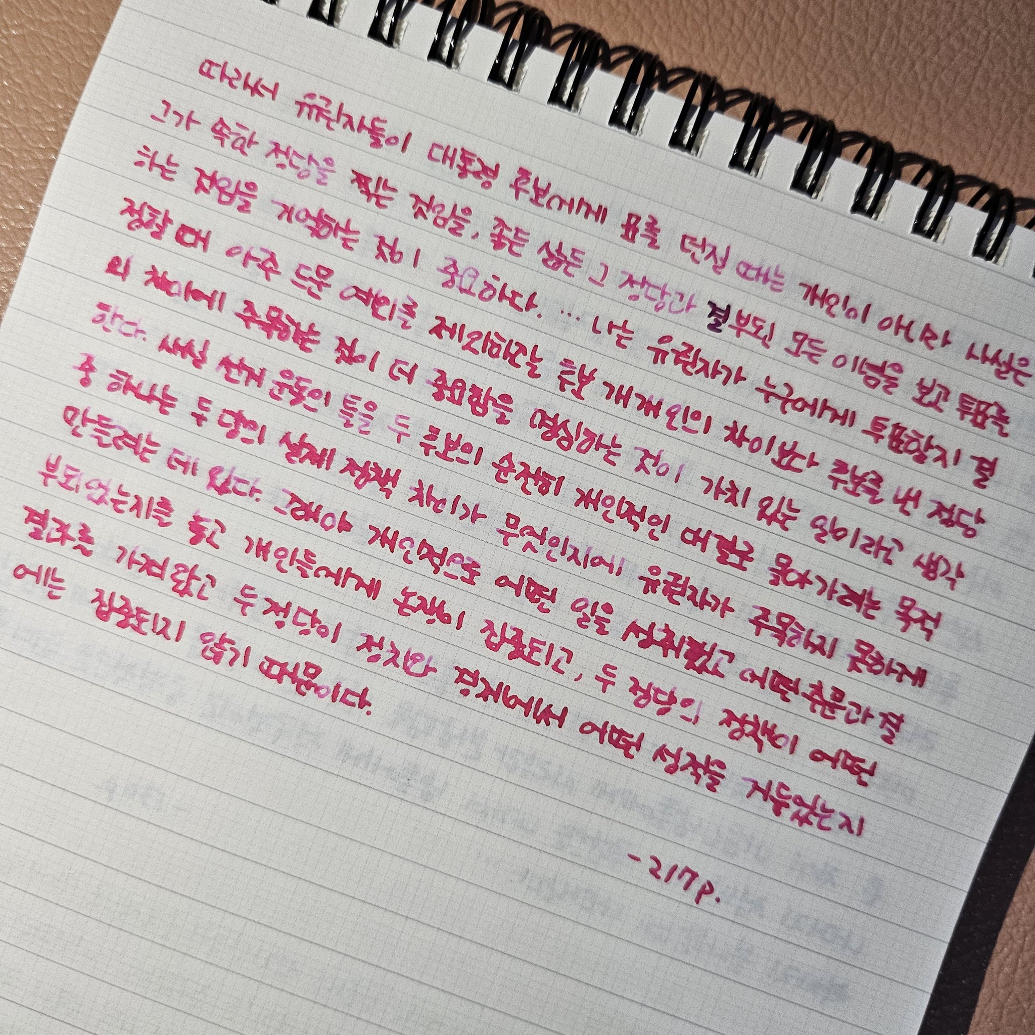 우리는 이미 지난 대선에서 0.7%의 표 차이로 무슨 일이 벌어지는지를 보았다. 내가 살면서 직접 겪을 거라고는 생각조차 하지 못했던 계엄이 펼쳐졌고, 경제는 박살났다. 실시간으로 물가가 올라가는 걸 체감하고 있다. 이 나라는 수많은 혐오에 노출되어 있고, 편 가르기에 고통받고 있다. 이런 때일수록 우리는 정당이 내세우는 이념을, 정책을 살펴야 한다.