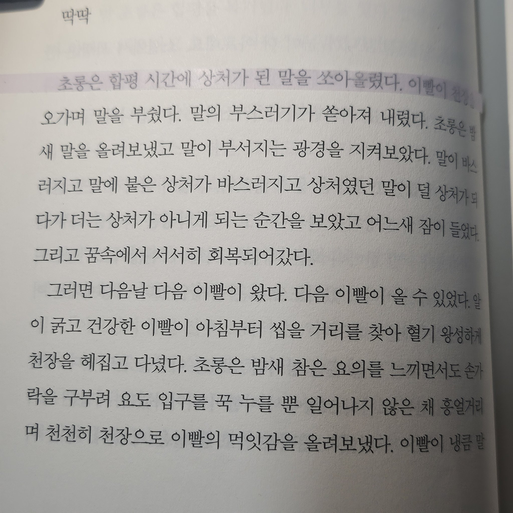 이건 문장이 너무 좋아서. 상처가 된 말을 부수는 것도, 자신이 쓴 소설을 박살내는 것도 알이 굵고 건강한 이빨이다. 단순히 비유여도 좋고, 실제로 어떤 말을 해서 꼭꼭 씹어 뱉은 거라고 생각해도 좋더라. 말도 문장도 자신이 꼭꼭 씹어 다른 무언가로 소화해내는 과정인 것처럼 보여서.